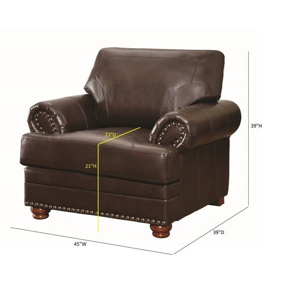 Crafted with bonded leather, the chair features a high resiliency foam for plush seating. Great savings & free delivery / collection on many items. Designed with a contemporary silhouette, it keeps the graceful look of a classic. Nailhead trim elevates the elegance factor in a living room, bedroom or home office.