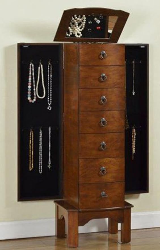For the price not happy at all. Here, your favorite looks cost less than you thought possible. Solid wood with wood veneer, natural beauty, rich brown tones. With slide out drawers,compartments,large storage pouches and the earring holders which can hold all of your jewelry.
