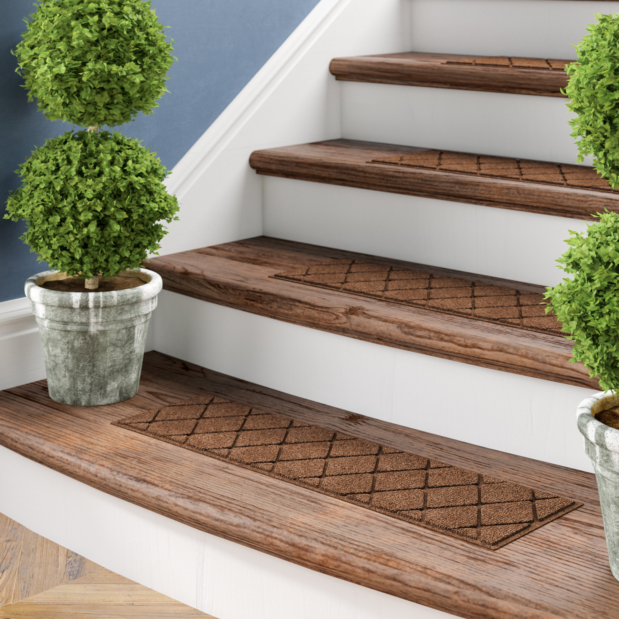 Just peel away the protective layers from the adhesive strips and apply the stair treads to your steps to provide.