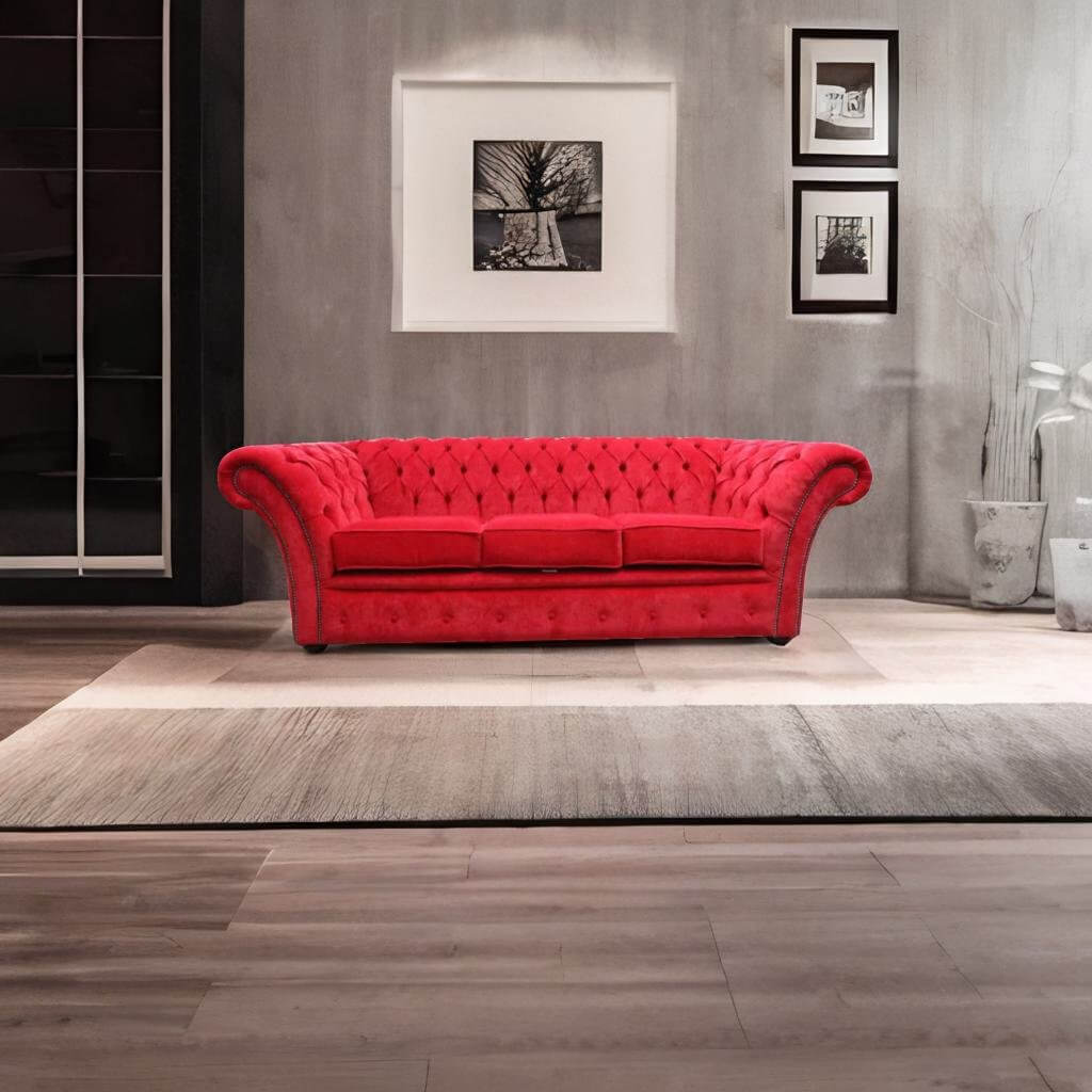 All our fabric sofas come with fibre seats as standard with the option to upgrade to a foam interior. Chesterfield dark grey fabric 2 seater sofa • manufactured in a soft tufted chenille effect durable fabric that gives extra comfort. Red tartan three seater chesterfield fabric sofa.